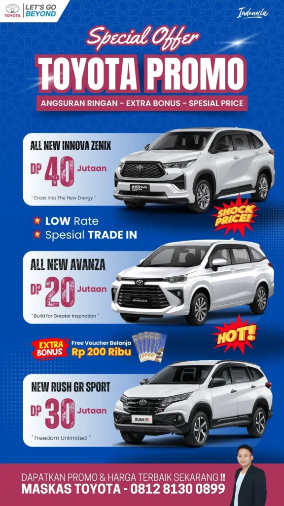 Yang paling di nantikan dan ditunggu-tunggu adalah promo, diskon dan program menarik dari kami dan perusahaan TOYOTA, yang tentunya akan sangat menguntungkan anda.